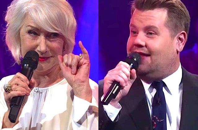 Corden poked fun at “The Queen” star’s love life, her accent and movie roles in the “Drop the Mic” segment. At one point, he even donned a fake crown to declare himself the winner.