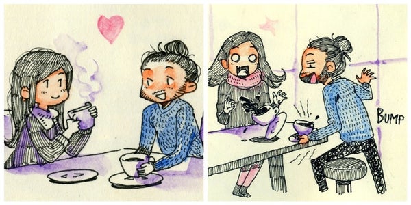 That’s why we love Italian artist Simone “Simz” Ferriero’s illustrations, which capture the sparks that flew when he first met his long-distance girlfriend, Krisi, in person in December.